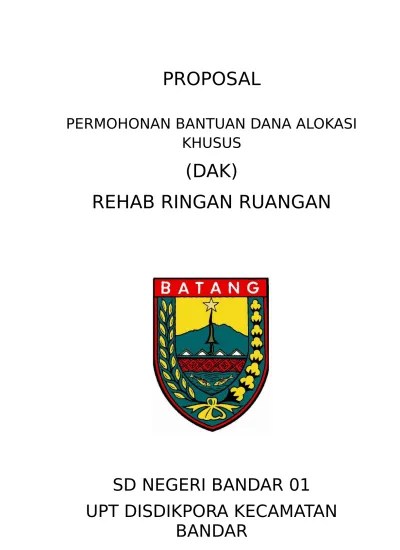 Sekolah dasar negeri mangli 1 kabupaten bondowoso provinsi jawa timur . Permohonan bantuan dana alokasi khusus. Permohonan bantuan rehabilitasi ruang kelas melalui dana apbnp tahun 2011. (doc) proposal pembangunan gedung madrasah miftah. Proposal permohonan bantuan dana alokasi khusus (dak) rehab ringan ruangan sd negeri bandar 01 upt disdikpora kecamatan bandar tahun 2014 pemerintah .